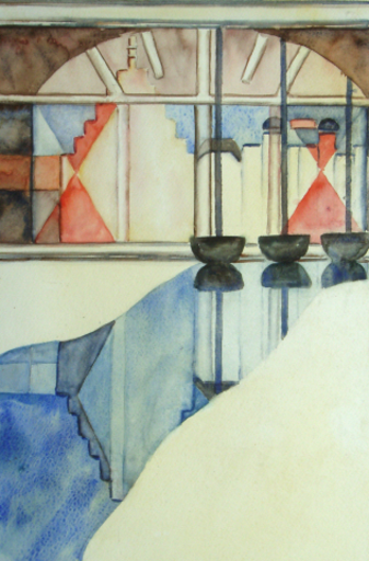 Naast op zichzelf staande werken, werk ik ook graag aan series. Dan neem ik één onderwerp dat me bijzonder aanspreekt en maak van dat onderwerp verschillende uitvoeringen, meestal van zeer figuratief tot mogelijk geheel abstract. Een voorbeeld daarvan is het Galgewater van Leiden. Hiernaast staat de derde van die serie.