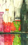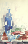 2006Licht, kleur, glas en weerspiegeling in enigszins geometrische vormen maken deze aquarel.