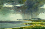 2003Hier is de natuur de baas: een zware stortbui ranselt de nietige duinen van Terschelling. Aquarel.